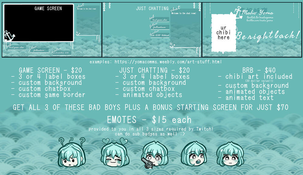 hi, im yoma! thanks for coming to check out my commissions. please note that all prices are in USD and i only accept paypal!